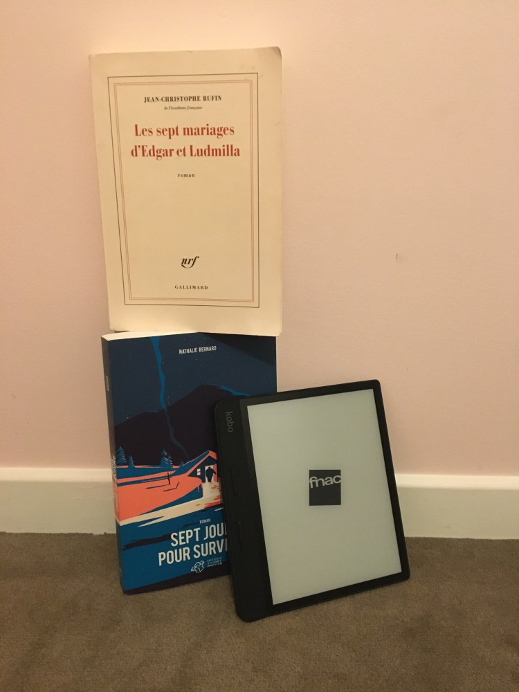 Donc, le dernier livre que j’ai lu est Sept jours pour survivre de Nathalie Bernard, et je suis actuellement en train de lire Orgueil et préjugés de Jane Austen sur liseuse. J’utilise cette dernière seulement pour une courte durée, car elle ne m’appartient pas. Le but était justement de voir si cela me plaisait comme format de lecture. Après avoir longuement réfléchit, j’ai décidé de ne pas en prendre une maintenant. Quant au format, la liseuse me plaît bien, elle peux être facilement transportable (ce qui est très pratique, car parfois, surtout durant les vacances d’été, ma valise est pleine à craquer vu que j’emporte parfois dix livres avec moi !) mais elle n’égale pas le papier. D’autre part, à part les classiques, les livres ebook sont moins cher que ceux en papier, mais la marge n’est pas très grande. Mais j’y réfléchit…